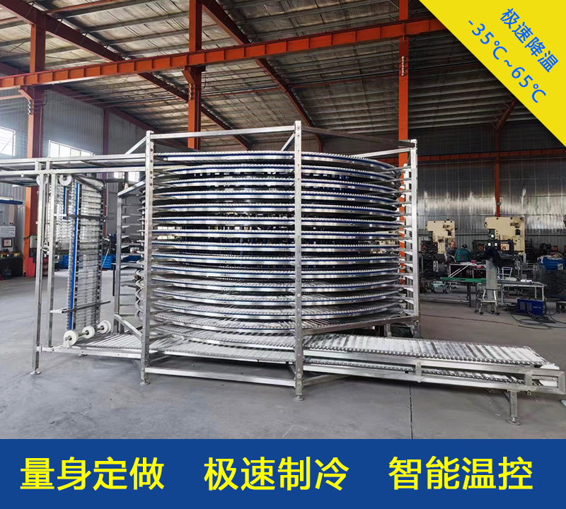 速冻隧道亦称隧道式速冻机:通过输送网带将货物传送至隧道内,货物经过隧道后被迅速冻结,一端进入,一端输出,全过程完全速冻好,方便高效。